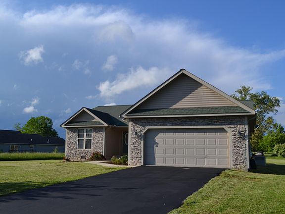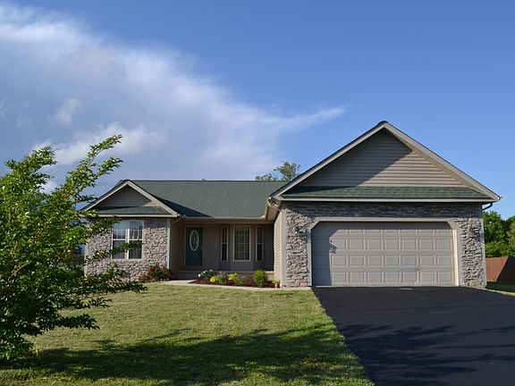 Beautiful stone and vinyl 3bd. 2ba. home with a stone fireplace and cathedral ceiling. Hardwood and tile through out. All kitchen appliances convey. A covered back deck, 2 car garage and ready for you to move in.