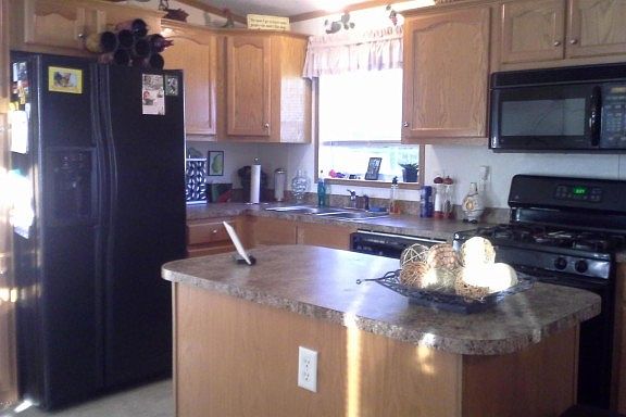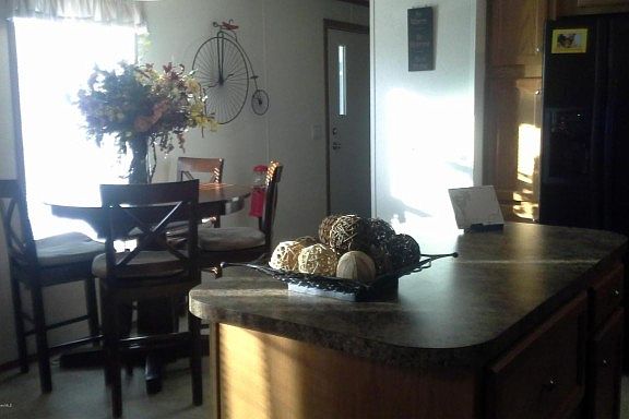 Excellent condition corner property in a park that allows dogs and is eligible for financing. Bonus Sun Room with sliding door! central air, large kitchen with center island, Master Bedroom walk-in closet, french doors to master bathroom with separate soaking tub, washer/dryer in separate area (not in the typical hallway of most mobile homes), several parking spaces right in front of this home for easy entertaining, very large yard area, storage shed. This one is a must-see!