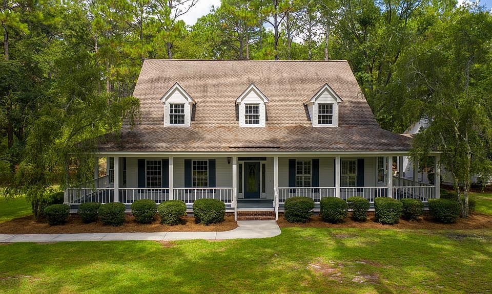 Only at Long Pine Subdivision will you find the serenity one desires. Nestled under 6.5 acres of tall pines is a custom built 4,330 square foot southern living home with a wrap around porch. This home offers gleaming heart pine floors, five bedrooms and five bathrooms. The downstairs master has walk-in closets, large bathroom with a private sunroom, formal living, and dining room. The family room is enhanced by a wooden fireplace which leads out to a screened porch for those evening sunsets. The kitchen features granite countertops with granite backsplash. The upstairs offers three bedrooms, two baths and a den for entertaining. The exterior highlights a patio, fenced in pool, three-car garage and a long winding driveway.