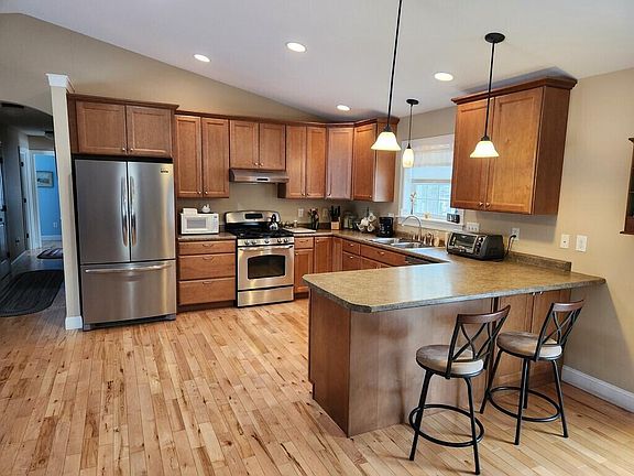 Beautiful Ranch! Built in 2013, this pristine three bedroom two bathroom home is located in a desirable subdivision with 2.21 acres, and 296 feet of water frontage all on Kenduskeag Stream. The inviting front porch welcomes your friends and family into this lovely home with cathedral ceilings and a large open floor plan. The living room has a cornered gas fireplace with ample room to entertain all your guests, the kitchen has a breakfast bar and stainless steel appliances with eye catching cabinetry. The dining area leads to sliding glass doors that open to a 12x24 deck with power awning and private back yard. The primary suite is spacious, and has its own bathroom with walk in shower. Two additional bedrooms, full bathroom and laundry area all on the first floor. An attached mud room with direct entry into the two car garage and full basement. The basement is open with walk out access to the well manicured backyard. The two car garage has high ceilings with an additional garage attached for your recreational vehicle, or that private workshop you have always wanted. Stunning Oak flooring throughout, full house generator and large windows that fill the rooms with natural sunlight. Shed for additional storage of your gardening tools. A short distance to Bangor for easy commuting. This home has been meticulously cared for by its owners and is waiting for you!