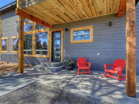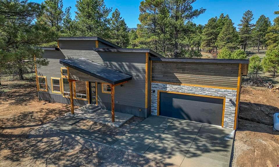Swanky Brand New Single Level Modern Mountain Home Designed and Constructed by San Juan Custom Homes...Just Completed!!! Low Maintenance Luxury, Ultra Rich Finishes, A/C, Privacy, and Mountain Views. 1637 sf with Open Natural Light Filled Living-3 Bedrooms and 2 and a Half Baths on 0.28 Acres. Boujee from Top to Bottom!!! This Sleek and Sexy New Home Has Upgrades that Are Superior to Most Customs. A Concrete Walk Leads You to a Beautiful Blue Pine T&G Covered Entry with Recessed Lighting and Matte Black Sconces. Modern Four Panel Reed Glass Door takes You Seamlessly Into The Vaulted Blue Pine T&G Ceiling Great Room With 9" Extra Wide LVP Flooring, Amazing Solid Alder Trimmed Oversized Windows and Serene Linear Gas Fireplace with Thermostat and Blower that's Set Into a Tower of Black Quartz Stack Stone With Custom Mantle. The Gourmet Chef's Kitchen Has All Stainless Appliances, Custom Cabinetry with 42" Uppers, Large Pantry, Solid Granite Waterfall Island With Pottery Barn Pro Glass Pendant Lighting, and Black Stainless Sink With LED Faucet and Pot Filler. A Private Treed Setting Covered Deck is Conveniently Accessed From the Kitchen Making Year Round Enjoyment and Cooking Out Just Perfect. This Luxury Packed Home Boasts an Oversized Primary Suite Fit For A King With Room Enough For A King Sized Bed, Desk, Seating, and More. Huge Walk In Closet With Custom Barn Door and An Absolutely Stunning Spa Bath with Solid Granite Top Double Sink Vanity, The Coolest Mirror Ever, and Tiled Walk in Shower (Upgraded Tile From Arizona Tile) with Frameless Glass Door and Waterfall Head. The Split Plan Gives Everyone Privacy Under One Roof With Two Large Guest Rooms And Full Open Concept Bath With Upgraded Tiled Shower and Granite Top Vanity On the Opposite Wing. Half Bath With Hand Crafted Floating Live Edge Vanity, Modern Wall Plumbing Fixture, and Gray Granite Sink Are Privately Located Adjacent to the Laundry and On The Way in From The Spacious Attached Two Car Garage. This is hands Down the Nicest New Build Available In Pagosa! Exterior is a Gorgeous Combination of Low Maintenance Smart Siding With Cedar Truss Detail and Stacked Stone Accent Around Garage Door. No Wait No Waste With The Navien Tankless Hot Water Heater. Wait There's More...EV Plug, and Even The Garage Door is Upgraded With Wifi Capability to Open and Close Along With A Security Camera. Blink or Ring System Camera is Being Installed at the Front Door Also For Added Lock and Leave Convenience. A Perfect Mountain setting Amidst the Lofty Ponderosa Pines yet Located Only a Short Bike Ride Away from Everything in Uptown Pagosa. You'll be in Great Company in The Hot-Up and Coming Chris Mountain Subdivision with All Brand New Homes and Walking Trails just Feet Away! Central Water & Sewer, All County Maintained Roads, Good Cell Service and Internet Options. Pagosa Springs is Celebrated As Being in The Top 10 Mountain Towns in America to Live, Having The World's Deepest Hot Springs, Wolf Creek Ski Area, Fish Rich Live River Waters and Over 2.5 Million Acres of National Forest and Wilderness. This One Will Be Snapped Up Quickly, So Schedule Your Showing ASAP!