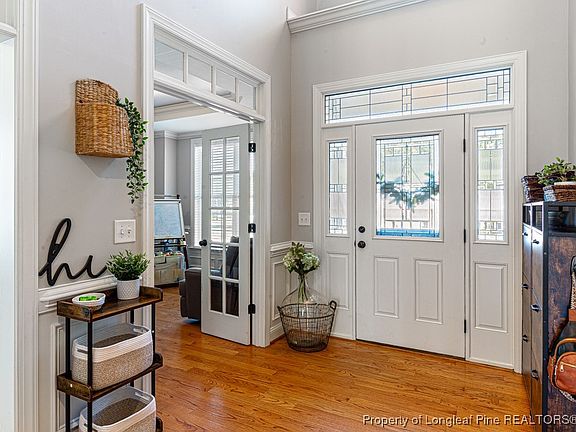 Gorgeous 3300+ sqft 5-bedroom, 3-bathroom home. Step inside and you'll find a 2 story foyer, private study, formal dining room, and bright and airy kitchen that opens into eat-in kitchen with counter seating and family room with a stone fireplace. A guest room and full bath complete the main floor. Upstairs, the luxurious master suite with jetted tub, separate tiled shower, and large walk-in closet. Three additional bedrooms and a spacious bonus room with wet bar and fireplace provide ample space for family and guests. 2nd floor laundry for added convenience. Located in the sought-after gated Carolina Lakes community. Enjoy 7 lakes, marina with beach, pool, tennis, pickle ball, and basketball courts, baseball diamond, walking trails, and disco golf. Summer markets and tons of other community affairs. Experience resort-style living every day in this stunning close knit community!