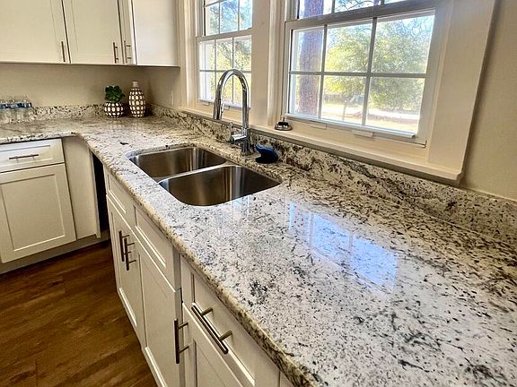 Completely RENOVATED. New: Electric, plumbing, A/C, flooring. Solid wood cabinets, granite counters. HUGE lot 1.27 acres. 3 large bedrooms, office area, foyer/mudroom, separate living and dining areas, 2 large bathrooms, spacious closets, one-level split bedroom plan. Finished Detached storage building off the covered carport. Large wooden barn/shed. walking distance to downtown DeFuniak shops, dining and Circle lake.