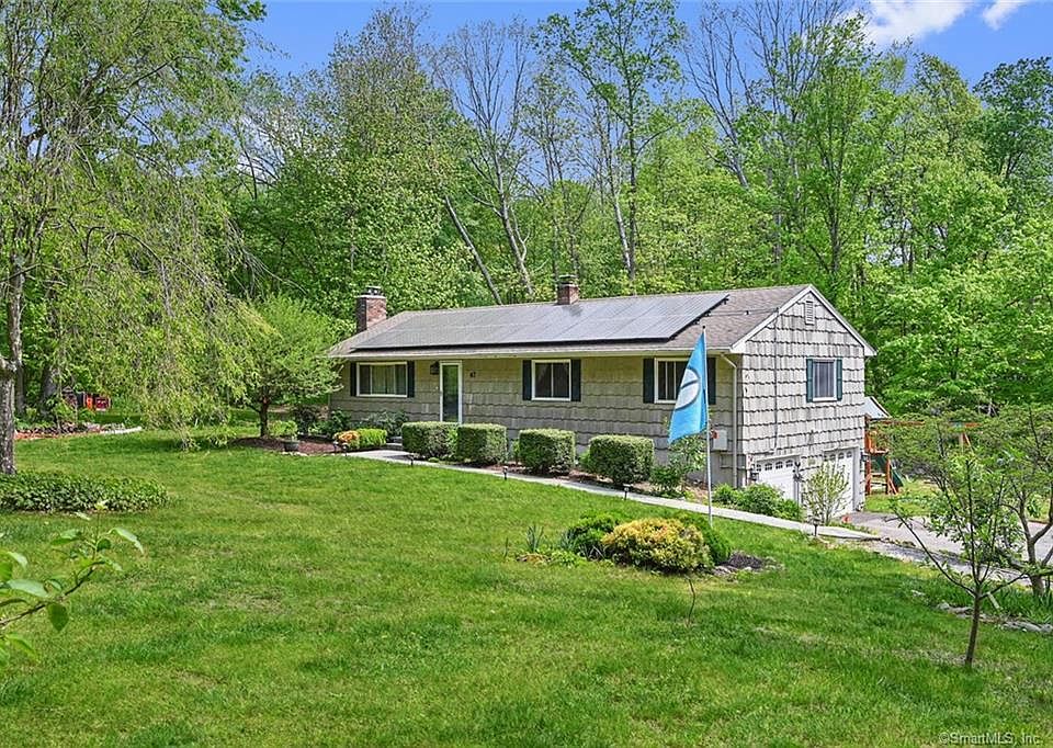 Welcome to serenity - where one can get lost in the park-like activities found no further then the back yard. Located on just under 3 acres, journey around the cleared rolling yard surrounding this charming home. A loving home and well kept, this lovely ranch offers three bedrooms and two full baths, including primary suite. Open Kitchen with stainless steel appliances, tile backsplash, dining area and rear deck for additional entertainment. Hardwood floors throughout all bedrooms along with living space. Downstairs is finished and used currently as a gym and an office + additional bonus brick fireplace & slider door to rear. (In total 1,366 SF upstairs with additional 594 SF on the lower level + two car garage and utility room). Overall the location and lot are very private, with natural tree lines shaping the property and nestled well back from the road (located at the end of a shared driveway). Enjoy the bucolic setting from the spacious back deck, with great outdoor space featuring lush/mature plantings, rolling lawns for a play/gardening, among other activities. Tons of landscaping, tree removal and additional exterior drainage since ownership; wildlife includes deer and the occasional owls at night. Huge yard adjacent to town open space bringing very quiet and serene atmosphere. Parks, Fairfield Hills property and I-84 located less then a mile away.