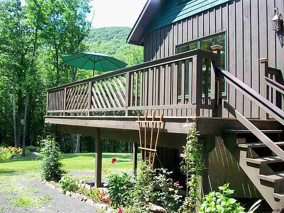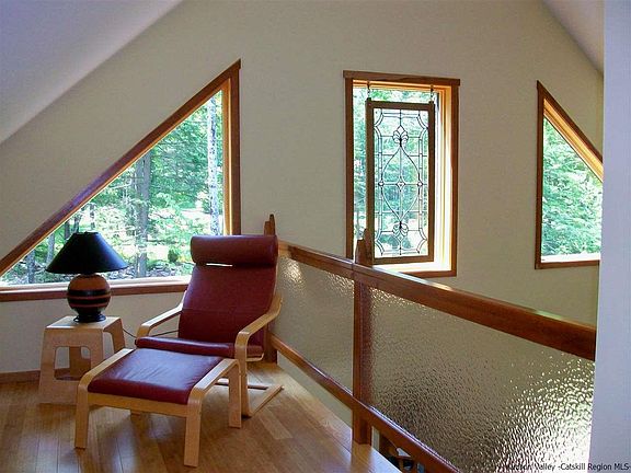 TWO YEAR OLD MOUNTAIN HOUSE PERFECTLY POSITIONED ON TWO IDYLLIC ACRES,BORDERED BY THE TIMELESS VAN DERVOORT STREAM AND FACING NY STATE "FOREVER WILD FORESTS." VERY PEACEFULLY QUIET. THREE FULL FLOORS OF WELL PLANNED AND EXECUTED LIVING SPACE TRANSLATE INTO OPTIMUM FUNCTION AND COMFORT. THE ENTIRE TOP FLOOR CONSISTS OF A CATHEDRAL CEILINGED MASTER BEDROOM SUITE WHICH CAN BE RECONFIGURED AT WILL WITH THE USE OF THE OVERSIZED POCKET DOORS. THE MAIN LIVING LEVEL FEATURES A WIDE OPEN CLEAR SPAN ENCOMPASSING THE KITCHEN,DINING AREA AND LIVING ROOM WITH A CORNER WOOD STOVE BACKED BY ANCIENT FOSSILIZED STONE. ADDITIONALLY,THERE ARE TWO BEDROOMS AND A BATH ON THIS LEVEL. THE FINISHED LOWEST LEVEL,WITH IT'S OWN ENTRY AT GRADE,PROVIDES ACCESS TO THE GARDENS AND WRAP AROUND DRIVE. THIS AREA WORKS WELL AS A PRIVATE FAMILY OR GUEST QUARTERS-OR PERHAPS AN OCCASIONAL RENTAL. OVERSIZED WINDOWS THROUGHOUT ALLOW NATURE'S SYMPHONY TO PLAY INTO THE LIGHT MELLOW INTERIOR SPACES. WOOD,CORK AND PORCELAIN TILE FLOORS BLEND SEAMLESSLY WITH ONE ANOTHER,AS DO THE AMERICAN CHERRY AND RARE ASH FINISHING DETAILS. THINK ABOUT CONDUCTING A GASTRONOMIC SYMPHONY FROM THE EXPANSIVE CHERRY/GRANITE/STAINLESS KITCHEN! HOW ABOUT FISHING FOR YOUR SUPPER,AS IN NATIVE BROOK TROUT,FROM A MOUNTAIN STREAM ON YOUR OWN LAND. IF HIKING IS YOUR THING,GREAT TRAILS ABOUND ALL AROUND YOU. SKIING AT BELLEAYRE OR HUNTER IS A FIFTEEN MINUTE DRIVE AND PHOENICIA,THAT METROPOLIS OF CULTURE AND FUN,IS FIVE MINUTES AWAY. WELCOME TO A DIFFERENT STATE OF MIND.