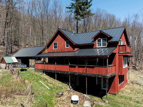 Perched atop a hill with commanding views of Vermont's rolling landscape, this sweet property is a true treasure. Crafted in 2010 using Post & Beam architecture, this residence boasts durability, from its sleek standing seam metal roof to the impeccably dry basement. Stepping into the spacious mudroom, one is greeted by the contemporary openness of the first floor, featuring a chef's dream kitchen equipped with dual stainless steel Viking ranges complemented by an ample stainless steel hood system. The expansive central island offers abundant counter space and an extra surprise—a generous walk-in pantry. A sunlit dining area facing southeast completes this inviting space. Adjacent lies a versatile library/office area, with tons of shelving built in & fully wired with Comcast high-speed internet. Ascending to the next level, discover the primary bedroom with its luxurious ensuite bath and sizable walk-in closet. A full bath serves the remaining two bedrooms, along with a conveniently located laundry room. The bright, walkout basement awaits your creative vision, offering over 1000 square feet of potential. Outside, a substantial Post & Beam garage/barn, a charming chicken coop, a woodshed, and a small animal shelter, enclosed by fencing, grace the grounds. A petite garden plot invites your inner farmer to flourish. In summary, it is a sturdy, contemporary gem. Close proximity to Grace Cottage Hospital. 25 min. to Stratton & Mt. Snow. Delayed showings 6/8/24, Open House 11-2.