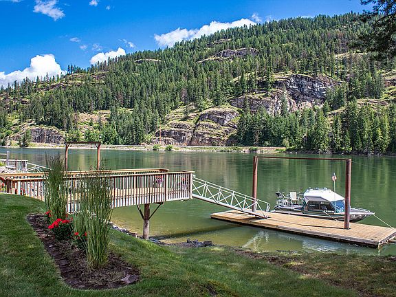 Pilots, take note of this absolutely impeccable waterfront home, garage, and hangar on two separate lots ready for new owners to enjoy. The 3-bedroom, 2.5 bath home has a split floor plan, huge kitchen with granite counters and stainless-steel appliances, master suite with walk-in closet and full bath, and covered porches to take in the dramatic views of the water and the mountains. Located on the mighty Clark Fork River, the 1.2 acre level, landscaped property boasts 200' of frontage, private dock with ramp and platform, private boat launch, and access to Riverlake Airport (ID75). The 40'x50' hangar door dimensions are 37' 9'' x 12'. The property consists of Lots 99 and 100, River Valley Estates.