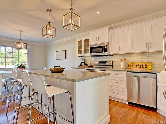 Featuring a level of craftmanship rarely seen on a fully renovated property, this spectacular creekside home on a cul-de-sac boasts lovely views of the Charles E Wheeler Wild Life Preserve with its beautiful shore birds and ever-changing seasonal vistas, while remaining outside of the flood zone. This tasteful renovation includes a beautiful new kitchen w/white shaker cabinets, lovely tile work, modern quartz counters, pantry, and custom designed center island w/a sitting area overlooking the large backyard and wildlife preserve. Past the kitchen the casual sunroom is lined with windows to drink in the views and a slider to the rebuilt deck w/modern copper railings to enjoy summer nights taking in the peaceful atmosphere. Also on this floor is a laundry room, 2 bedrooms, 2 bathrooms, all new light fixtures/solid doors, and intricate crown molding treatments throughout. Upstairs find 2 bedrooms (one with glimpses of the Housatonic River), a hallway big enough for a small desk/play area, attic storage access, and a bathroom. On the basement level find a large family room/potential 5th bedroom and garage access. Enjoy years worth of trouble-free living with updated HVAC, new electrical panel, and all new windows! This convenient location is close to beaches, schools, Milford downtown/train station. Nothing will compare to the sense of peace you will feel as you sip your morning coffee while listing to the birds chirp and while taking in the coastal beauty of this fabulous home!