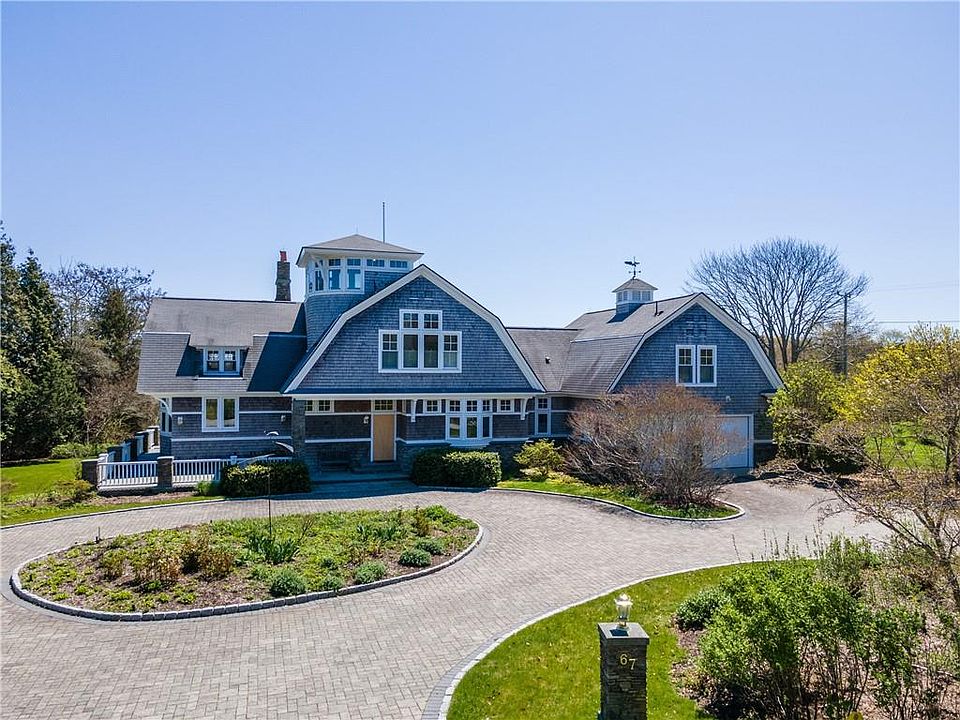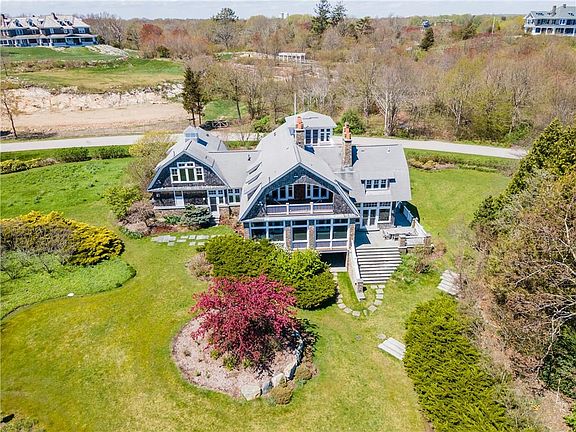 *Input for Appraisal Comp Purposes* - This custom designed Gambrel Cottage by award winning architect William Burgin, is sited on nearly 2 acres in the sought after neighborhood of "Ocean Highlands / The Dumplings". Located across from Ft. Wetherill State Park, the house has commanding views of the wonderful natural setting and lush landscape, distant water views are seen from the covered balcony and observation sunroom on the 3rd level with deck. The light-filled interior has soaring vaulted ceilings, custom staircase and multiple fireplaces.The spacious eat in kitchen with brick fireplace, enjoys the early easterly sunrises.A formal dining area & living room has a double sided fireplace,and doors that lead to a lovely south-facing screen in porch. A cherry paneled office has an adjacent full bath.A powder room is located adjacent to the inviting entry foyer. The staircase leads to an open to below central gallery with custom bookcases and wall space ideal for art and sculptures. This central gallery leads to a covered deck which overlooks the wonderful landscaping.A large sitting room/den can be used as a guest bedroom with fireplace and built-ins.The primary suite on this level with fireplace,has a private bath with laundry.The custom staircase continues up to an observation sitting room,with outdoor deck. In a separate wing above the 2-car garage is a wonderful office/living room,guest bedroom,with full bath.Ground-based solar array, generator.