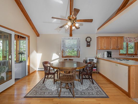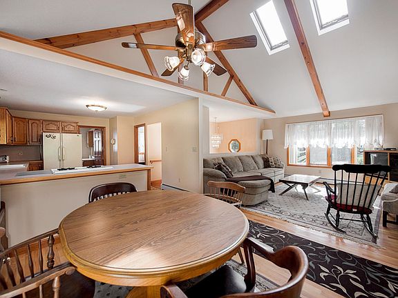 - Ceiling Fan(s), Dining Area, Kitchen/Dining, Kitchen/Living, Living/Dining, Natural Light, Natural Woodwork, Storage, Wood Stove Hook-up