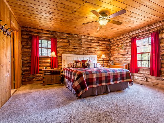 Please select * Contact Owner * below and not an agent. I am selling this FSBO to avoid fees. I am not interested in owner financing. Log Cabin - offered completely furnished. We offer it as a rental on 3 websites. Booked for 118 nights last year. We used it for 4 weekends that could have been rented. We have a great person for cleaning and another for property/cabin maintenance. I'll gladly share our rental information with a serious buyer. Forced hot air and a wood stove for heat. Ceiling fans in all the downstairs rooms / bedrooms. Master bedroom with master bath, 2 bedrooms with a queen bed each. Full guest bathroom. 2nd floor loft with 6 twin beds. Full basement with washer, dryer, bilco door, workbench, oil tank. Many recent upgrades. New clothes washer and dryer in basement. New dishwasher in the kitchen. All rotted logs replaced and entire cabin re-stained spring 2019. Back porch re-stained spring 2019. New hot water heater. Nest thermostat and Aquanta water heater controllers. Turn heat and hot water on and off remotely as needed to save money.