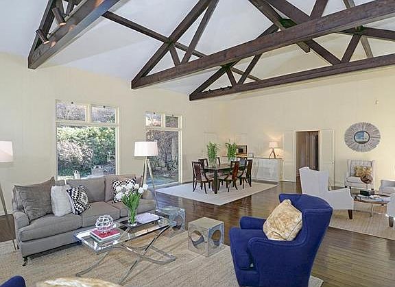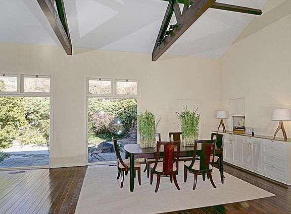 Just 1 minute from town, across the street from Land trust, this serene 1 ac property is a private getaway. A dramatic Great Room with a cathedral beamed ceiling and great glass walls bring the living room and dining room together as one.A Media Room, Master Suite and 2 other bedrooms on 1st Fl. A 2nd Floor suite w/it's own outside entrance for in-laws or a home office. A private terrace w/coi pond off LR & DR. Many flowering shrubs and trees around the secluded pool area. 2 car garage