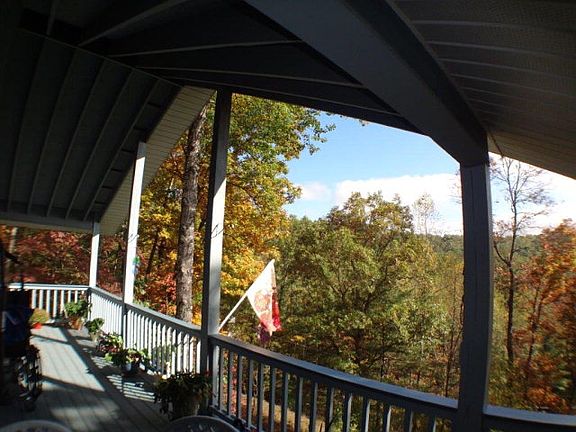 Inside this quiet neighborhood with paved roads is a private home on 1.40 acres surrounded by woods, wildlife, flowering plants and two covered porches to enjoy it all. The lower level could be a third bedroom and bath with access to the covered porch or a rec room for lots of fun times. The main level has a cathedral ceiling and an open floor plan with a gas log fireplace in the living room. Sliding doors lead to the covered porch off the living and dining room. The kitchen has a large breakfast bar/island with plenty of counter space for the cook. Two bedrooms and two baths are on the main level and the bathrooms both have sky lights.Not far from town or shopping.The roof was replaced in 2014 and the AC in 2016.