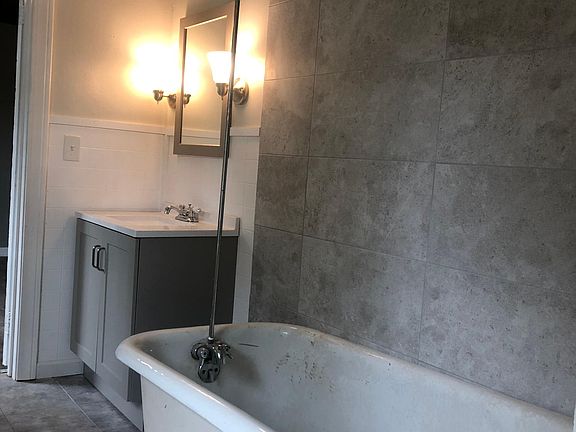 First floor two bedroom one bath apartment with laundry hookups in the apartment. The unit includes a newer stove, fridge, kitchen cabinets, and vinyl waterproof floor in the kitchen. Hardwood floors in the dining and living room with newer windows throughout the apartment. Tile in the bathroom with a claw foot tub. There is a front porch and a large yard. Off-street parking for two cars. Pets ok with an additional monthly fee. MUST COMPLETE ZILLOW APPLICATION BEFORE VIEWING. Requirements: -Proof of income (3 monthly rent $2850 monthly) -Credit score 650 -No violent crimes or collections from previous tenants -Pets are allowed with a $25 monthly pet fee. Owner pays for water and trash. Laundry room hookups in the unit.