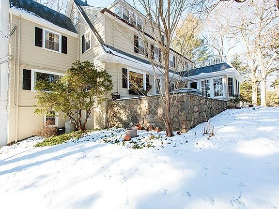 Premier South Side 1930's colonial located on the Wellesley border with easy access to train, 128 and Mass Pike. With significant period details , this fabulous home has been lovingly updated and thoughtfully renovated while keeping the character of the original home . Elegant living room with fireplace, banquet sized dining room,large eat in kitchen with fabulous pantry, cherry library, 5 ensuite bedrooms with full baths. Finished lower level with family room, fireplace ,exercise room and laundry room. This outstanding offering is sited on an exquisite 2 plus acre lot with lush and mature landscaped grounds and magnificent sky views. Abutting Weston Trails,walk to Leo J. Martin Golf course, short distance to Wellesley Farms Train ,128 and Ma. Pike.