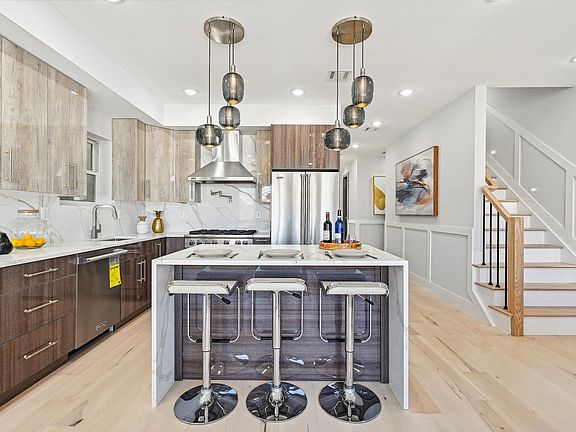 Welcome to this exceptional Brand New Construction luxury condominium, ideally positioned on one of JC Heights' most desirable streets. This meticulously crafted residence spans an impressive 1,422 square feet, offering three bedrooms and two baths. Upon entering this carefully curated home, you'll be greeted by an inviting, open layout seamlessly blending a spacious living and dining area. The interior is adorned with modern accents, including high ceilings, light-finished 6" wide plank hardwood flooring, Anderson windows, a custom-built electric fireplace, and 8-foot custom entry doors throughout, creating a warm and welcoming atmosphere. The gourmet kitchen is a haven for culinary enthusiasts, boasting 60-inch sleek custom soft-closing cabinets, a walk-in pantry closet, quartz countertops, a stylish backsplash, and a generously sized center island. Complete with a full suite of VIKING appliances, it combines functionality with elegance. The expansive Primary Bedroom serves as a true retreat, featuring two custom designed closets, a private balcony overlooking the surroundings, and an en-suite bathroom. In addition to the luxurious Primary Bedroom, this upscale condo offers two additional spacious bedrooms, each adorned with ample living space and large closets. Ascend to the upper level to discover a hidden gem—an exclusive PRIVATE roof deck that redefines urban living, providing a serene retreat above the cityscape. Residents will appreciate its proximity to NYC transportation, neighboring districts, and an array of shops, restaurants, and cultural attractions. 5 YEAR TAX ABATEMENT. TWO PARKING SPACES AVAILABLE FOR PURCHASE! Parking is being offered at $45K /space or $75K for the entire garage deeded.