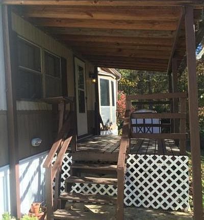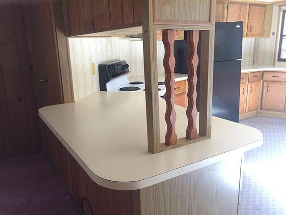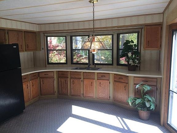 Enjoy a huge eat in kitchen and living area in this creek-side home, located in quiet, wooded community with cheap lot rent. Park rules say no dogs.