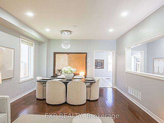 Welcome to this stunning and value-packed detached home located in the highly sought-after Wismer Community. This spacious 4+1 bedroom residence features a two-car garage and is situated on a quiet, kid-friendly street with no sidewalks, offering both safety and tranquility. This beautifully maintained home with the Original Owner boasts 9-foot ceilings, fresh paint throughout the first and second floors, and elegant hardwood flooring. The modern kitchen is equipped with quartz countertops, a stylish backsplash, and a convenient eating island, perfect for family gatherings and entertaining. The professionally finished basement includes a bedroom with an en-suite bathroom, providing additional space for guests or family members. The backyard is meticulously landscaped with interlock patio stones and a charming gazebo set, creating an ideal environment for outdoor relaxation and social occasions.Located within the top-ranking Bur Oak Secondary School zone (ranked 11th among 746 schools), this home offers excellent educational opportunities. Recent upgrades include a new roof (2023), quartz kitchen countertops (2024), the addition of a gazebo (2024), and hardwood flooring on the second floor (2025).With quick access to Highways 407 and 404, this property presents an exceptional opportunity for comfortable family living in a highly desirable community. Don't miss out on this fantastic home! Close to Markville Mall, Centennial GO, TTC accesible, Angus Glen Community Centre