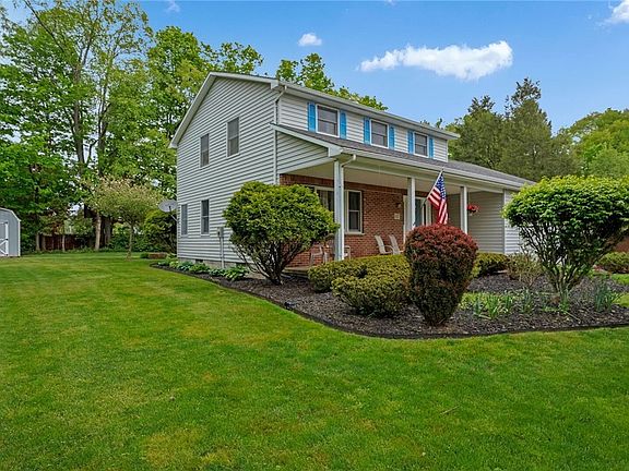 This beautifully maintained 3 bedroom 2.5 bath Colonial is located at the end of a cul-de-sac. The covered front porch leads to the entry foyer and main floor living space. You will love the formal living room, dining room, half bath and wonderful eat in kitchen with cherry Quaker cabinets and center island. Step down family room adds plenty of room to relax and entertain. A deck off of the kitchen is perfect for grilling. The laundry is on the 1st floor. Upstairs is the primary bedroom with double closets and its own bath. Two additional bedrooms and full bath complete the upstairs. A full basement with workbench adds storage and could be finished for additional living space. Shed for storage, lovely landscaped yard and blacktop driveway. Newer hot water tank. Showings begin Saturday, May 18th.