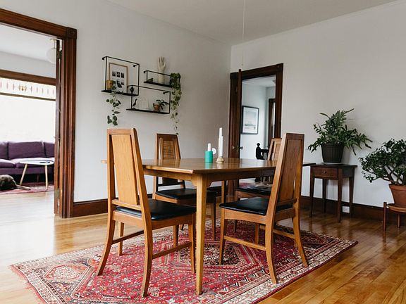 These are the photos from when it was previously fully furnished. This is a large, second floor, partially furnished (does not have to be), one bedroom apartment. This could easily be a two-bedroom, but it's currently furnished as one. There is also an office, large and private entry way and 3-season porch. The yard is fenced in. Washer/Dryer shared with one other unit in the basement. All utilities are the tenant's responsibility (electric, gas, internet). Owner pays for water. If you have a smaller car you can park off street in front of the garage. Private entrance.
