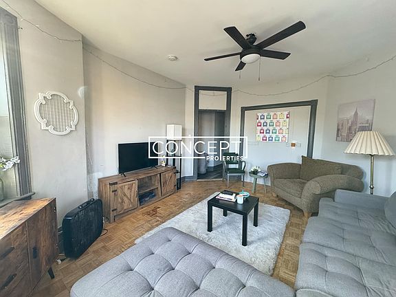 Top Floor 4 bed 1 bath on Pontiac St Features New hardwood floors Spacious rooms Eat in kitchen Living room Deck, laundry in building Close to the Green Line, Orange Line, and buses