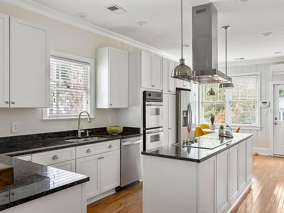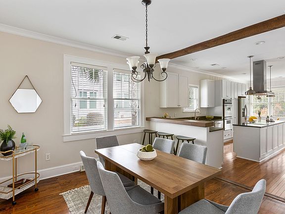 Adorable 1930s 3BR/2BA bungalow with full front porch and driveway parking just off Rutledge Ave! Updated for modern convenience with historic charm still in tact, including living room fireplace, original hardwood floors and solid wood doors. Wide open kitchen with island range and exhaust hood. Fenced yard has pergola-covered patio, raised garden beds, and a storage shed. Plentiful street parking and one off-street driveway spot. Pull-down attic stairs provide access to a large floored and conditioned bonus space. Enjoy low energy costs from solar panels on the metal roof - most months are less than $25. Flood insurance is optional. Walk to all of your favorite restaurants and parks!