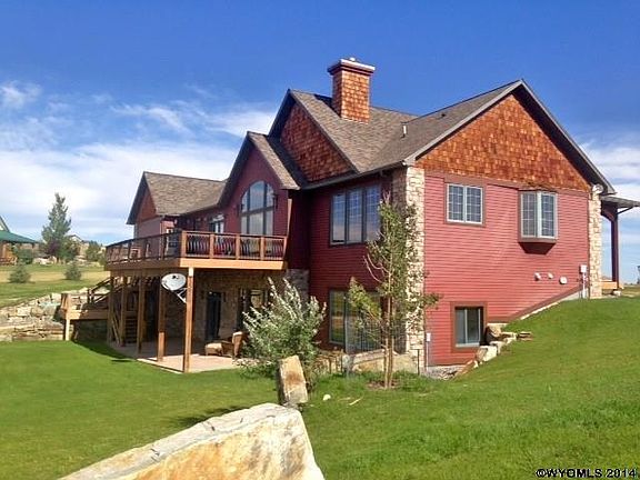 This is one gorgeous home on 2.62 acres with a view of Cloud Peak Mountain tops! Beautiful quality finish and architectural design, this large home overflows with luxury and comfortable living. Custom kitchen with granite counter tops, stainless steel appliances, open floor plan with gas fireplace in living room. Four car capacity garage, fireplace, large rooms, full finished walk out basement. House is wired for stereo surround sound throughout. Outdoor living space with large deck and patio.