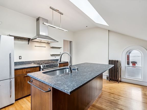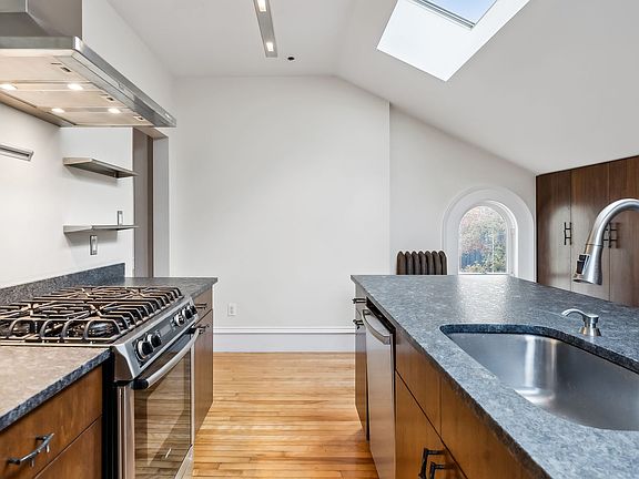 Experience the perfect blend of modern amenities and historic charm in this stunning 2-bedroom, 2-bathroom unfurnished apartment, spanning the second and third floors of a beautifully maintained, historic Portland building. The spacious living room boasts oversized windows and a striking historic brick chimney, creating a warm and inviting atmosphere filled with natural light. The primary suite is a serene retreat and spans the entire third floor, featuring skylights and an en suite bathroom with a custom tile shower. The second bedroom, equally versatile, makes a perfect office or guest room. The thoughtfully designed kitchen is a chef's dream, complete with custom cabinetry and high-end appliances. Stay comfortable year-round with efficient heat pumps for heating and cooling. Additional features include off-street parking, access to a fenced-in yard, and a location just steps from the Eastern Promenade, offering unparalleled access to everything Portland has to offer. Don't miss this incredible opportunity to live in one of the most desirable neighborhoods!