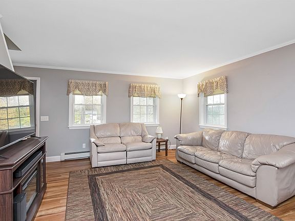 Discover this spacious 3 bed, 2.5 bath Milton Colonial, nestled on 1.12 acres! Upon entry from the stunning covered wraparound porch, venture into the large living room complete with plenty of natural light, beautiful hardwood floors, and a gas fireplace. Hardwood floors continue into the bright dining room, which sits adjacent to the open-concept kitchen. In the kitchen, you will find tile floors, a large double sink, a tiered breakfast bar, and access to the back deck through sliding doors. The first floor also includes a ½ bath with a granite vanity and a mudroom with direct access to the garage. Upstairs, the massive primary bedroom features a walk-in closet, a nook perfect for a home office, and an ensuite bathroom with a gorgeous custom-tiled step-in shower. The upstairs level also contains two well-sized bedrooms and a full bathroom with a double sink vanity, laundry, and tiled floors. Outside, the spacious back and side yards are sure to offer year-round enjoyment. The large back deck is perfect for entertaining with a newly lined pool and built-in hot tub! Notable improvements include a new septic system (2021), new hot water tank (2020), and all new plumbing in the unfinished basement (2020). In close proximity to the Lamoille River and Arrowhead Mountain walking trails, and just 10 minutes from I-89 and Milton Town Center, you won’t want to miss out on this ideal home that offers the best of country living in a quiet neighborhood setting!