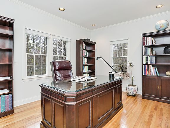 Inviting and sunny 6 bedroom colonial with soaring ceilings and open-plan layout. Spectacular double-height family room features a wall of windows that overlooks the large level yard. Fully finished basement has room to spare and a private guest/au pair suite with full bath. Conveniently sited at the end of a coveted west side cul-de-sac and caringly maintained with lush landscaping and expansive Azek decking that's ready for summer fun and entertaining.