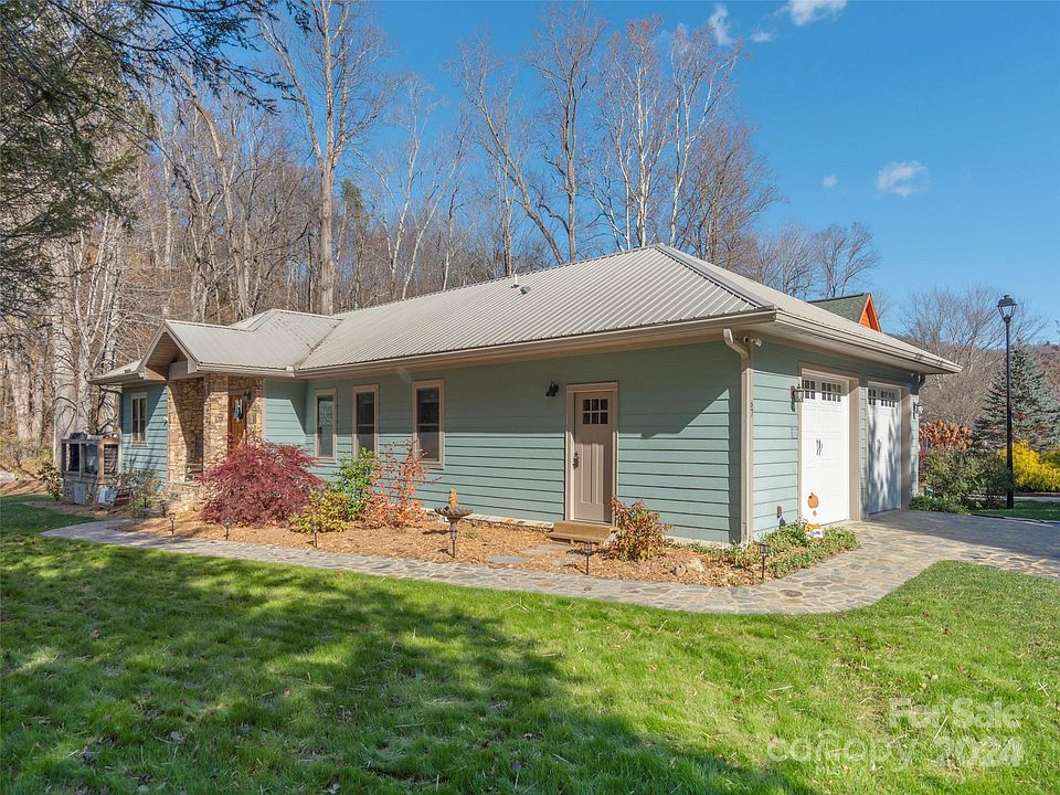 Bring your fishing poles and discover your mountain retreat in the heart of Maggie Valley! This custom charming home boasts breathtaking mountain views and the soothing sounds of rushing Jonathan Creek, which you can enjoy by the stunning stone outdoor firepit and seating area. Relax on the screened-in porch by the cozy outdoor fireplace or take in the scenery from the hot tub. Inside, the high ceilings with tongue-and-groove wood, create a warm and inviting atmosphere. The gorgeous kitchen with high-end appliances and granite countertops, large bathrooms, cozy living room with a fireplace, and convenient laundry room offer all the comfort and functionality you need-all on one level. This property is filled with warmth and charm, making it a must-see! And with the adorable town of Maggie Valley just moments away, you'll love calling this gem home!