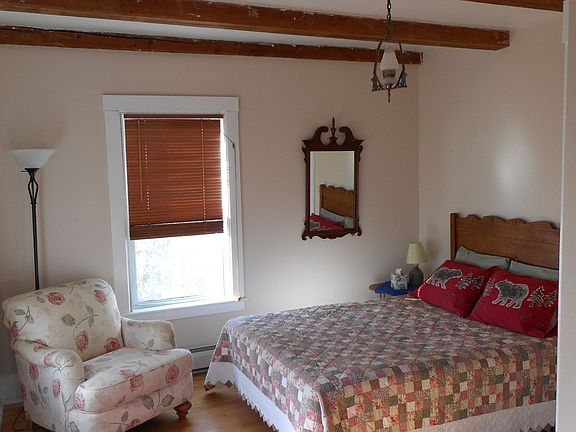 This is a classic Vermont farm house, large attached garage/barn, cozy kitchen with a propane fireplace, upstairs rooms, some unfinished and waiting for the next phase. The house has an excellent rental history, spacious back yard with a river view, and road frontage perfect for a home business if desired. Location, location, location! Great schools, award winning public library, community suppers--the list goes on. Schedule an appointment and see for yourself!