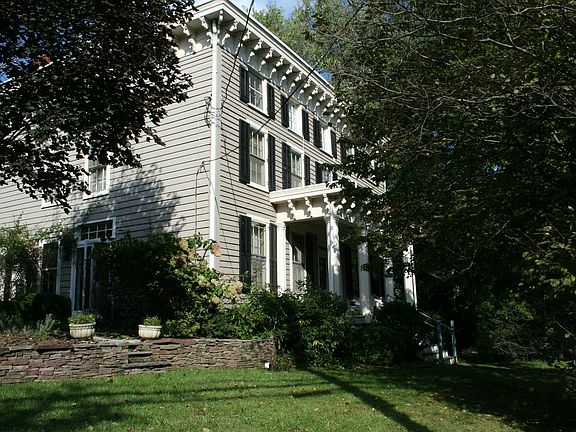 Large historic Federal, meticulously restored. Situated among terraced gardens, flowering trees and a stream with a waterfall. Large rooms, fireplaces, a country kitchen with new stainless steel appliances. Had been an operating B&B with 5 guest rooms each with its own bath and additional owners quarters. Professionally landscaped and maintained. French doors open from the living room to formal gardens filled with perennials and lilac trees. There are many built ins and window seats. A pleasure to show. One year Home Warranty included.