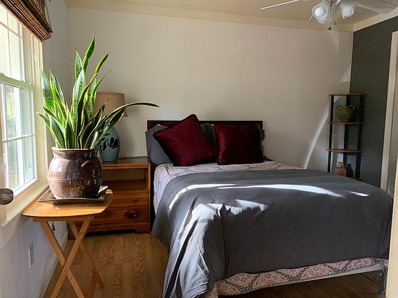 FULLY FURNISHED. Super clean, impeccably maintained, elegant, spacious, peaceful, cozy, warm, spa house in a bamboo forest. All on one floor, home is 3 BD, 1.5 Bath, garden tub, expansive decks, fire-pit, vibrant permaculture gardens. Easy off-street parking for 3 vehicles including a carport. Eco/green, low-chemical environment. Spa element includes: four-level, whole house water filter (removes chlorine, fluoride, heavy metals, pharmaceuticals) and a three-person far-infrared sauna. Open floor plan connecting kitchen, dining room, and living room. Bedrooms are off the main area. 270 sf master bedroom with a queen sized bed. One bedroom with queen. One bedroom with full. One bedroom with twin (although another queen is a possibility). Large full bathroom with garden tub, two sinks, shower and toilet area. Half bath with toilet and sink. Washer and dryer on site. Set back from the road and has a country feel but yet is central to highways, 240, 40, and 26 (13 minutes to downtown, 15 min to Biltmore, 10 min to W. Asheville, 15 min to Blue Ridge Pkwy.) Sand Hill District of West Asheville. Very close to Bent Creek Experimental Forest with miles of hiking, the NC Arboretum, the Blue Ridge Parkway. Nearby to Sierra Nevada Brewing, New Belgium Brewing, and dozens of other local area brewers. LGBTQ friendly. Shares 1/2 acre property with two other tiny homes. Raised beds available for gardening. Firecircle and hammock in shady yard. Yard is NOT fenced but lots of woods and bamboo forest behind the house and Buncombe County Park across the street. Pets ok depending on situation. Equipped with everything needed to move right in. Kitchen fully stocked including toaster, toaster oven, Champion juicer, kitchen aid mixer, high quality pots and pans. Laundered fresh linens for all the beds and towels galore. Plenty of closets and shelving. Outside deck furniture. $2,590 rate is for a year lease. For 9 month lease it's $2,640. For 6 month lease it is $2,690. And for 3 month lease it is $2,740. Utilities included: Internet/wifi, trash, water, sewer, and yard maintenance. Utilities not included: Gas heat you will put in your name. Very efficient and affordable with a brand new furnace. Used from October to April. Video tour available. No smoking. Off-street parking for up to three vehicles including a carport. Potential pet depending on the situation. Lease available for review.