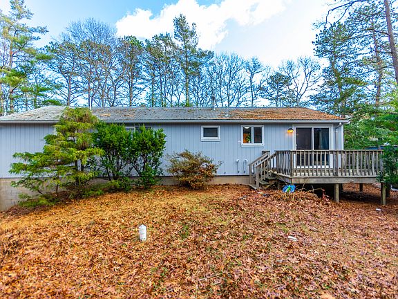 Nestled in the woods on just over 1/2 acre in Sand Pointe Shores is this 4 bedroom/2 bath Ranch with association beach & tennis. Living room with beamed ceiling opens to the dining area with slider to the back deck overlooking the woods & conservation area offering plenty of privacy. Kitchen with laminate floor & plenty of cabinetry for storage. Spacious main bedroom features a private full bath. Full walkout basement, new hot water heater & gas furnace installed in 2015. Great opportunity for first time home buyer, investment or Cape Cod getaway. Buyers/buyers agent to verify all information contained herein. Subject to seller finding suitable housing- has been identified.