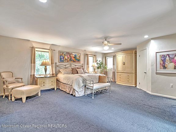 Move right in: remodeled & expanded, 4 BR + first flr office,3.5 Bath ,finished bsmnt w/full BA & wet bar, ~3235 SF on 3/4 of an acre w/a huge private bkyd & LOW TAXES. Hardwood (under carpets) thru most of home. Covered front porch. Custom beautiful large center island kitchen expanded 12' has everything you need w/slider to maintenance free deck & paver patio. LR w/ dramatic gas FP open to DR which was exp 8'. Large laundry Rm. Office 1st flr .Huge Primary Suite built over garage w/ 2 WI Closets & bath w/ dble vanities , soaking tub glass shower & heat lamp.Radiant heated flr in Main Bath Mostly Pella windows. Can walk to NYC bus,shopping,swim club & house of Worship. Close to train.THIS HOME IS NOT PART OF MONMOUTH HTS. IT IS A MARLBORO ESTS MODEL.HAS BSMT & OVER 3000SF More info.. The custom kitchen has a huge center island, granite c/tops,dec bksplash,lots of cabinets w/ Rain Glass inserts,Built in Monogram Refrig,Pull out Pantry,separate dining area,Dble Stainless oven & warming drawer,built in microwave & garbage disposal. Slider to maintenance free deck, paver patio (~2018). HWH ~ 2yrs. 220 Amp service. Pull down Attic steps. Added storage in garage.