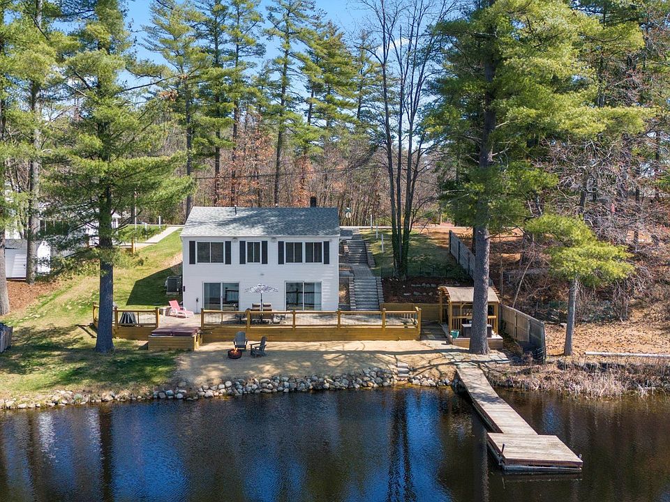 *OFFER DEADLINE WEDS 7PM. Indulge in the serenity of this waterfront sanctuary, surrounded by meticulously landscaped grounds. Lounge under the pergola or immerse yourself in relaxation as you soak in the hot tub, enjoying the soothing water and stunning waterfront views. Welcome to 67 Sebbins Pond, an exquisite home that offers versatility with two floors offering a living area, bathroom and full kitchen on each level .On the main floor step into luxury with the beautiful hardwood floors that guide you though the upgraded kitchen. Sink into the sumptuous depths of the copper tub and let your cares melt away as you gaze upon the tranquil waters. The downstairs kitchen adds an extra layer of convenience, making entertaining a breeze whether you are hosting a beach gathering or just enjoying the beautiful stone patio. This home also provides a guest house with living space, bath and kitchen creating potential rental income. Whether you are seeking a private sanctuary or multi-generational living solution, this meticulously maintained home is sure to exceed your expectations. Everything has been done for you. Over the years the sellers have updated both homes, installed a 40 foot dock, added the new stunning pergola, installed new granite stairs, new retaining walls and walkways. The new paved driveway offers 6 spaces for you and your guests.