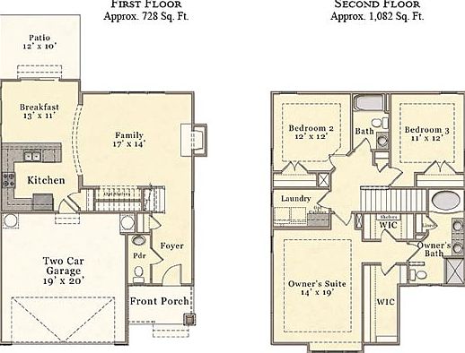 McKee Homes presents the Daniels Craftsman, with a charming wrap-around front porch and open floor plan. The spacious family room flows seamlessly into the kitchen and breakfast nook, which also offers easy access to the backyard. Upstairs you'll find three bedrooms, including a large master suite with his and hers walk-in closets; the master bath features a garden tub and separate shower, as well as a double vanity and plenty of storage. A second full bathroom is shared by the two guest bedrooms. The Craftsman Collection floor plans include all the great features of our Classic floor plans with custom exterior details that give these homes distinctive elegance and refinement. A blend of stone, siding and specially styled roof lines and supports give our Craftsman Collection a custom upscale look.