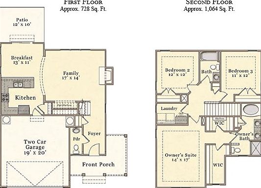 McKee Homes presents the Daniels Classic, with a charming wrap-around front porch and open floor plan. The spacious family room flows seamlessly into the kitchen and breakfast nook, which also offers easy access to the backyard. Upstairs you'll find three bedrooms, including a large master suite with his and hers walk-in closets; the master bath features a garden tub and separate shower, as well as a double vanity and plenty of storage. A second full bathroom is shared by the two guest bedrooms.