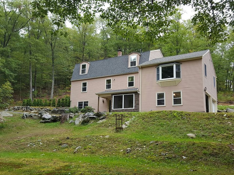 Beautiful 5 bedroom 3 bath, 2900 square foot Colonial style home that sits back off the road on 3+beautiful wooded acres, 400' of frontage and goes 400' back on 3.06 acres . Spend summer nights on your 3 season screened in porch enjoying mother nature. This is a great home for Entertaining! Large open kitchen/dining room with granite countertops, stone wall with wall mounted fire place, and hard wood style tile floors. 1st floor bath has whirl pool tub. Lots of Oak trim throughout. 2nd floor master bath features freestanding tub and a shower. Spacious living room has hardwood floors w/ French doors leading into the Family Room w/ soaring cathedral ceilings creating dramatic space, built in book case, bay window, recess lighting, wood burning fireplace, cherry hardwood floors. Master suite w/ large walk in closet & master bath. Modern fourth bedroom /in-laws suite with full bathroom on first floor. MUST SEE !