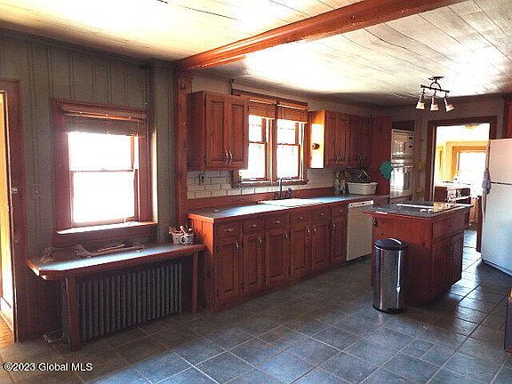 Cozy, rustic, and comforting. This 1800's traditional farmhouse boasts 2600 sq. feet of living space with 3-4 bedrooms, 1.5 baths, wide plank floors, exposed beams, and two large stone fireplaces. This home sits on 1.4 acres and is located close to the Great Sacandaga Lake and local boat launches. Recent upgrades include a new HW boiler furnace and baseboard heating units, a new HW heater, and new chimney liners in the living room fireplace. Laundry room on 2nd floor. There is a floored walk-up attic with plenty of storage space. Main entry room can be used as a three-season room and a spot is ready for a wood or pellet stove. Large one-car garage and an outdoor woodburning furnace.
