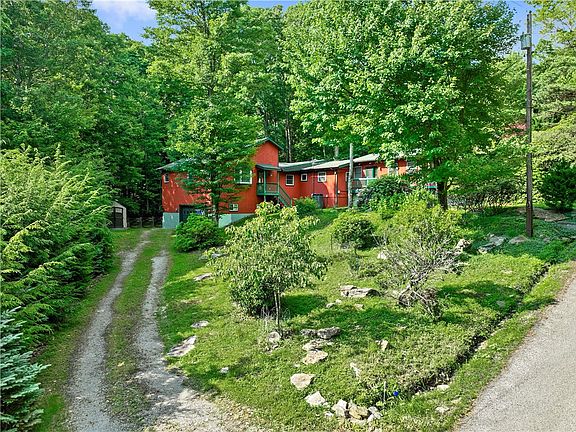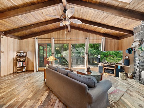Welcome to this secluded 4-bed, 2.5-bath home in Bear Rocks, nestled on 2.5 usable wooded acres. The master suite includes a bonus room with a separate entrance, and large closets throughout offer ample storage. The remodeled kitchen (May 2024) features new cabinetry, a wine rack, and modern lighting, flowing into a living room with a stone fireplace and skylights that brighten the home with natural sunlight. Enjoy the spacious front and rear decks, fenced yard, and pollinator-friendly landscaping. The majority of the lot is wooded and dotted with large boulders, adding to the natural beauty. Additional amenities include a 2-car garage, a 10' x 10' storage shed, a sunroom, new laminate flooring in the bonus room, and an acoustically designed room wired for additional speakers. With three driveways and plenty of parking, this well-maintained home combines modern comforts with a serene, wooded setting.