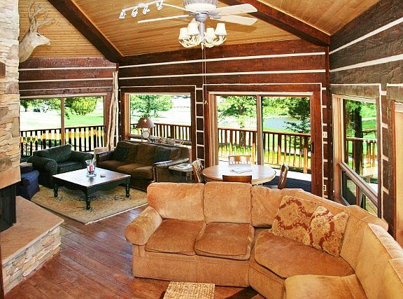 Golf Course Home with one level living. This home is located on the 11th hole of the Angel Fire Resort Golf Course with amazing views of the golf course. The spacious deck provides nice space for outdoor entertaining and is accessed from various rooms of the home. The home was updated in 2009 with pine walls inside and outside, pine and slate floors, custom concrete countertops, T&G ceilings. The stacked rock fireplace is the focal point of the living space. A level circular driveway provides good access to the home in all seasons. All roads leading to this home are paved and easily accessible.