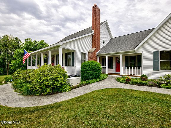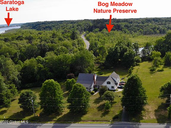 This home is a must see, one of a kind contemporary custom farmhouse set on 4.65 acres! Situated in a peaceful park-like setting w/ 2 ponds, an orchard, and perennial gardens. Backs to forever-wild Bog Meadow Nature Preserve & just a stone's throw to Fish Creek, Marina and Skidmore Boathouse. 4 short miles to the horse track & 8 min. to downtown Saratoga. Features include a 1st floor bedroom suite, a 2nd floor primary bedroom suite, and a 2nd floor guest suite - this home is perfect for a multi-generational setup, or a retreat for many guests! Amenities include hdwd floors, cherry cabinets, quartz countertops, 1st floor laundry, 3 season porch, 3 fireplaces, composite deck, mahogany porches, stamped concrete walks/patio & 3 car garage.