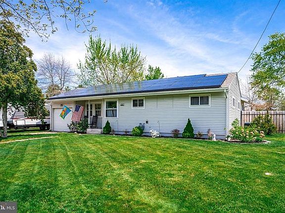 This is it! Gorgeous, well maintained rancher in Hampton Lakes is ready for you to call it home! The landscaping and exterior of this home has been lovingly cared for and maintained, and the cozy front porch invites you in. The entryway leads into a large dining living room with waterproof wood-look flooring and recessed lighting. The chef's kitchen is fully updated with stylish two-tone shaker cabinets, modern backsplash, granite countertops, pantry storage, stainless steel appliance package, and convenient butcher block prep area. There is also a dining area adjacent to the kitchen with two large storage closets. There is a large bonus room den that spans nearly the entire back of the home. The laundry room features stackable front loading machines and extra storage space for your convenience. The gorgeous wood look flooring flows into the hallway and all three bedrooms. The master bedroom is nicely sized and offers a view of the gorgeous backyard. The full bathroom is totally remodeled with tile flooring, updated vanity, and modern lighting and fixtures. There is a fully fenced, large backyard with a patio, firepit, and horseshoe area. Enjoy the perks of indoor outdoor living with this amazing home, which is conveniently located to major roadways, shore points, and Joint Base MDL. To add to the perks of this home, there is also a newer furnace (less than 3yrs old) with whole house humidifier! This home has solar panels, please inquire for more information.