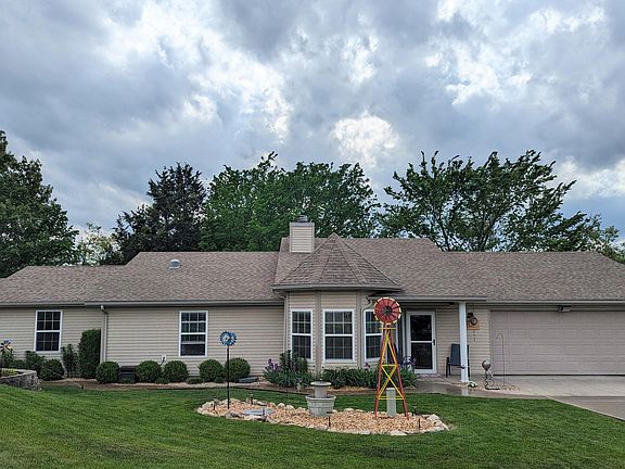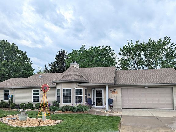 Special features in this Outstanding Home in a 55+ Community, were put in by the Sellers! The hickory cabinets, the granite counter-tops, awesome backsplash, the extra kitchen feature of a China Closet with nice work area, the beautiful upgraded appliances, walk-in pantry. the large dining room w/windows for viewing ,large utility room w/washer & dryer all on the tile plank flooring. A large carpeted Master BR w/2 separate walk-in closets, huge MBA w/glassed & tile shower, jetted tub & double sinks & heated tile plank flooring. BR 1 is carpeted & nice size & BR 3 has tile plank flooring is used now as an office. A lovely full Guest BA. The reading area off Living Room has windows for viewing &provides a cozy area for reading. A beautiful Gas Fireplace w/lovely mantel & stone sets off the living room. Off Dining area is a huge patio w/covered & uncovered areas for those times outside. From the covered front porch, follow the walk-way to the huge workshop with lots of storage space. Perfect as a man cave as heated & has huge fans as workshop is finished & had closed seal insulation in walls & ceiling. House has an Oversized 2 -stall garage with lots of room. The landscaping here is outstanding as the wife has a ''green thumb''. Grass is full in the yard & w/sprinkler system enjoy the labors of the Sellers from the beautiful lawn & flowers. Home Warranty provided by Seller so don't be sorry you missed this exquisite home.