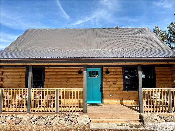 Call it home, your mountain getaway or vacation rental, this beautiful custom-built log home is nestled on a one and a half acre heavily treed property on a peaceful cul-de-sac and backs to a 6000-acre non-profit Western camp. Constructed from 8x8 Eastern white pine logs, you will find custom finishes, vaulted ceilings with lots of natural light, real oak distressed hardwood flooring, metal roofing and attention to detail around every corner. Spend your time on the large covered front porch for outdoor living while enjoying those mild mountain days and evenings. Close to world class fishing at Eleven Mile Reservoir/Canyon, the casinos at Cripple Creek, ski slopes in Breckenridge, white water rafting in Buena Vista, Florissant Fossil Beds all within an hour drive. Close commute to Woodland Park, Manitou Springs or Colorado Springs. This one is a must see! Do not follow google maps! It will take you to the wrong area. Follow supplied directions