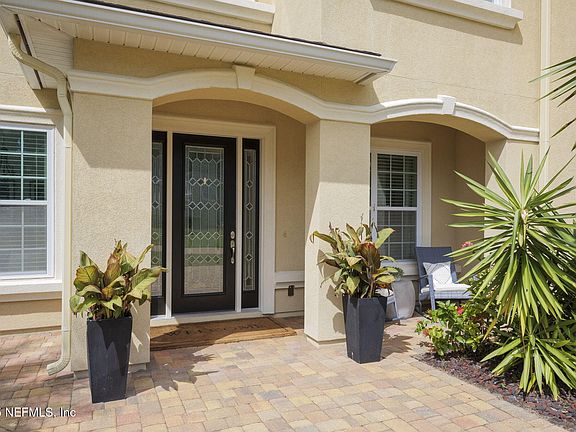Welcome to this stunning, fully furnished 5-bedroom, 4-bath residence nestled on a premium cul-de-sac lot in the prestigious, guard-gated community of Coastal Oaks at Nocatee. Enjoy breathtaking water-to-preserve views from your private second-story balcony off the owner's suite - an ideal retreat for morning coffee or sunset relaxation. This exquisite home offers a thoughtfully designed open floor plan featuring a grand 2-story family room, designer finishes, a four-season sunroom, and upgraded hardwood and tile flooring throughout. The private owner's suite is a sanctuary with serene views and spa-like amenities, while the home's versatile layout provides ample space for guests or family. Step outside to an expansive backyard, perfect for entertaining or relaxing in your own personal oasis. A professionally designed pool rendering by Premier Outdoor Pools is included - allowing you to envision and create your dream retreat. Imagine lush landscaping, swaying palms, and the soothing sound of water, all set against your spectacular natural backdrop. Additional highlights include: - Elegant 2-car garage with epoxy flooring - Generous storage throughout the home - Easy and quick access via a private, residents-only back gate (not open to the public) - School bus stop within walking distance, making mornings more convenient for families - Located in Nocatee's only guard-gated community, offering privacy, security, and world-class amenities - Home is fully furnished, with the option to have furniture removed upon request Don't miss this rare opportunity to own a luxurious turnkey home with stunning views, incredible indoor-outdoor living potential, and unmatched community perks. Schedule your private tour today - and start living the Nocatee lifestyle at its finest.