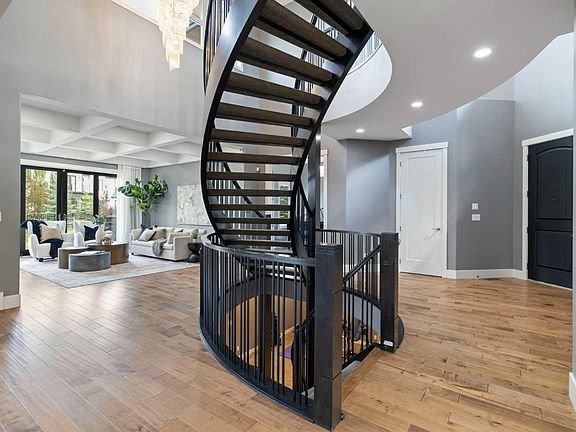 Welcome to 67 Stoneypointe Place, nestled in the award-winning Watermark community in Rural Rocky View County. This stunning luxury home offers the perfect blend of timeless design, modern comfort, and an unbeatable location - peacefully surrounded by nature, yet just a short drive from Calgary. This exceptional residence showcases four generously sized bedrooms, an executive office, three and a half elegantly appointed bathrooms, and a private home theatre - perfectly curated for both refined daily living and sophisticated entertaining. A grand curved staircase sets the tone as you enter, unveiling an expansive open-concept layout that flows effortlessly from one impeccably designed space to the next. The main floor boasts soaring 10-foot ceilings, while the upper level and fully finished basement feature 9-foot ceilings, creating a bright, airy atmosphere. Expansive windows throughout flood the home with natural light, adding warmth and charm to every space. A large formal dining room is perfect for family gatherings, while the living room—complete with a cozy fireplace—opens directly to the expansive back deck, ideal for relaxing or hosting guests year-round. You'll also find a well-sized main floor executive office, thoughtfully positioned for privacy and filled with natural light—perfect for working from home or managing daily tasks. The home features hardwood and tile flooring on the main level, soft carpeting in the basement, and central air conditioning for year-round comfort. The luxurious kitchen is a true centerpiece, equipped with premium appliances, a walk-through pantry, and convenient access through the mudroom from the spacious 3-car garage. Step outside to enjoy the expansive rear deck and private, fenced backyard—perfect for peaceful mornings or evening gatherings. Located just minutes from Calgary and within easy reach of Canmore and Banff, this home offers the best of both worlds: natural beauty and urban convenience. Surrounded by golf courses, shopping, and walking paths, Watermark is where lifestyle meets luxury and comfort in perfect harmony. This is more than a home—it's your next chapter. Come see it for yourself.