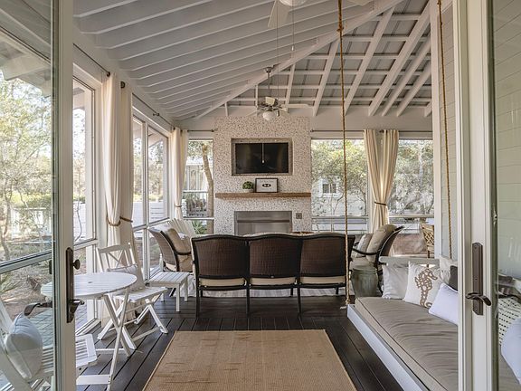 This exquisite Southern-style cottage is a masterpiece of refined elegance and effortless luxury, nestled within the prestigious WaterColor community. Thoughtfully designed for both relaxation and entertaining, the home's inviting front porch, shaded by lush greenery, sets the tone for a lifestyle of comfort and sophistication. Step inside to discover gorgeous hardwood floors, abundant natural light, and an impeccable open-concept living space that seamlessly blends style with function. A spacious dining area and wet bar provide the perfect setting for gatherings, while the gourmet kitchen, adorned with pristine white cabinetry, sleek countertops, and top-tier stainless appliances, offers an ideal space to prepare and enjoy coastal-inspired cuisine. Beyond the interiors, this home invites you to experience the beauty of outdoor living. The screened-in back porch, with exposed beams, rustic flooring, and a cozy fireplace, creates a serene retreat for unwinding with a glass of wine or watching your favorite show under the stars. A tranquil patio is perfectly suited for alfresco dining, while an outdoor shower offers convenience after a sun-soaked day at the beach. The four beautifully appointed bedrooms include a first-floor suite with an oversized ensuite bath, featuring a soaking tub and walk-in shower, and a luxurious master suite on the second floor with private porch access and a spa-like master bath. Additional updates include a redesigned first-floor master suite, an upgraded laundry room, and an enhanced half bath.